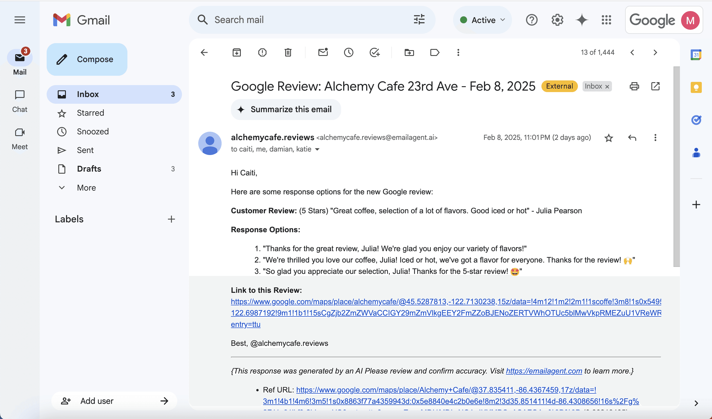 Plus, daily emails with all your new Google & Yelp reviews. See response recommendations, based on past responses—just approve or tweak, then post!